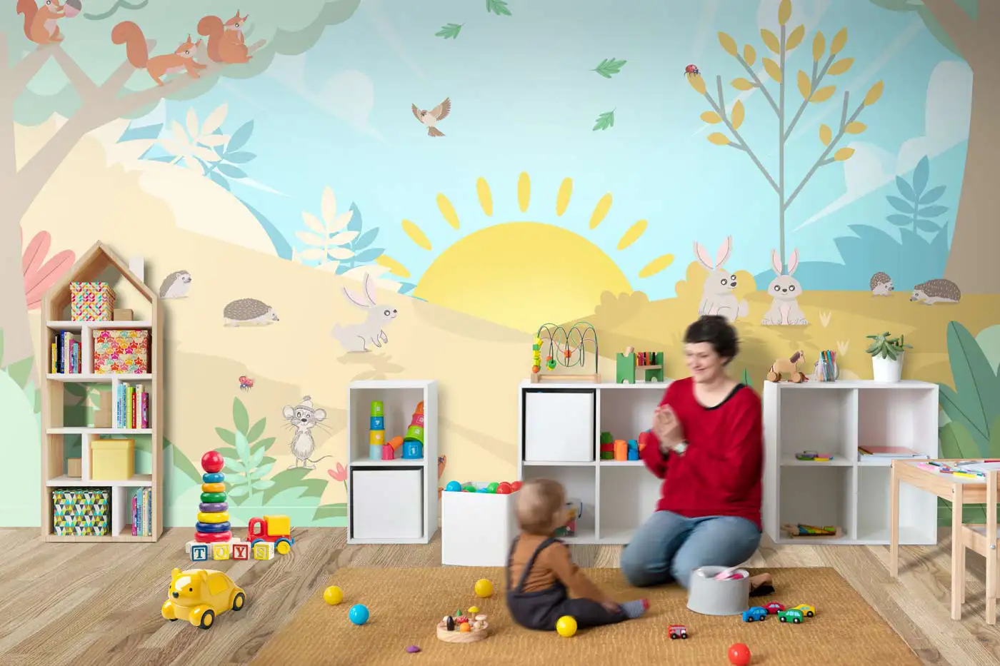 D’autre part, un décor bien pensé n’orne pas simplement les murs : il devient un terrain d’imagination. Des illustrations, des éléments narratifs ou poétiques encouragent l’enfant à créer, à inventer des histoires ou encore interagir. C’est une porte ouverte à l’expression personnelle.