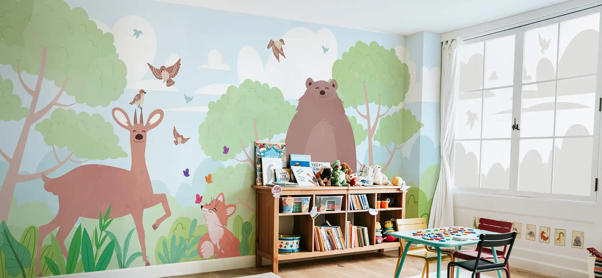 Les thématiques doivent parler aux jeunes et s’adapter à leur stade de développement. Nature apaisante, univers fantastiques ou motifs éducatifs… en définitive, chaque décor devient un support d’évasion ou d’apprentissage, tout en renforçant la cohérence des lieux de vie.